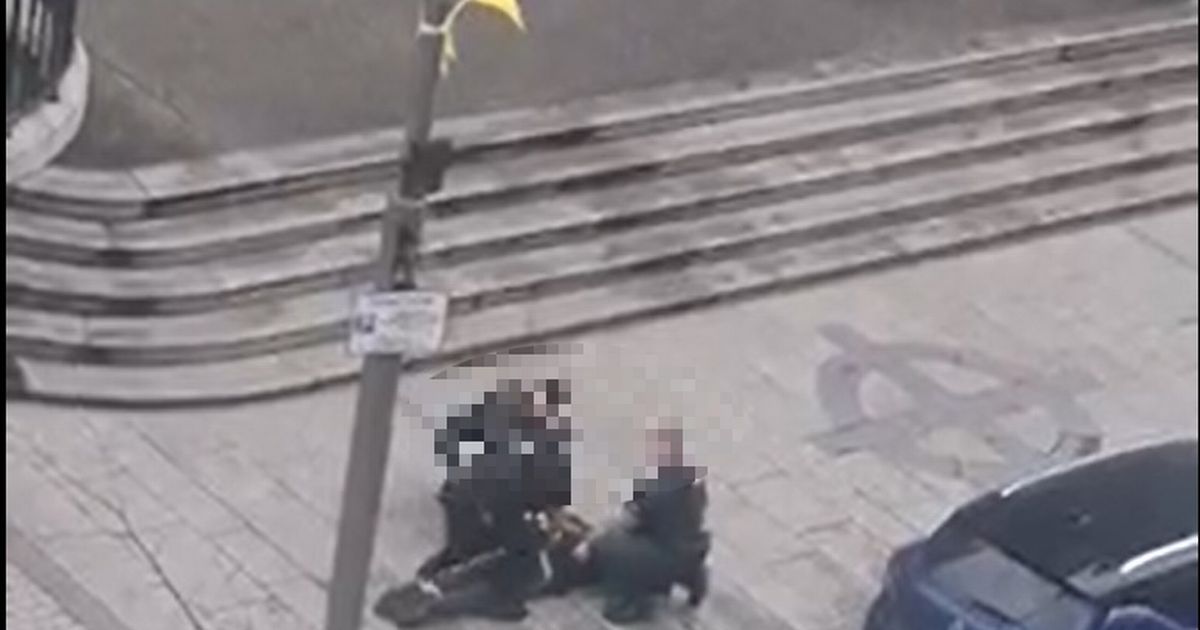 A potential hatchet attack outside Newry Cathedral has raised public safety concerns. The daylight incident took place on Hill Street in the centre of the city on Tuesday (Oct 21) below the steps of the Cathedral. An online video captured the arrest, with police officers ordering the male suspect to the ground and placing him in handcuffs with the alleged weapon removed.