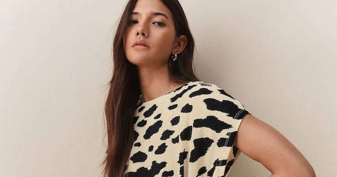 The popular Textured Drape Tie Front Mini Dress is on sale for £30. Coming in petite and regular sizes, it’s offered in black/white cow print, green geo print, and pink leopard.